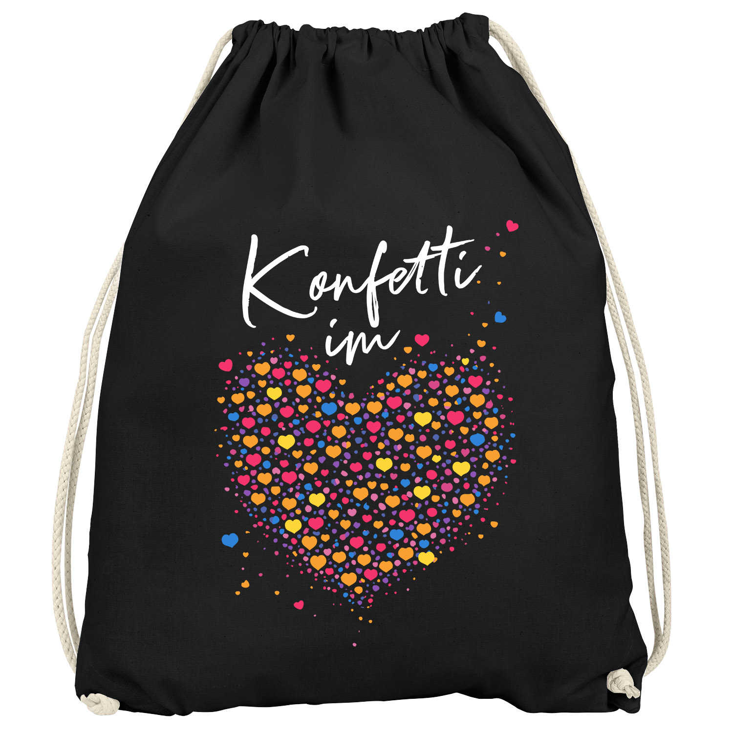 Turnbeutel - Konfetti Herz - Accessoires Fasching Gadgets Spruch lustig Faschingsartikel Tasche Gymbag Moonworks®