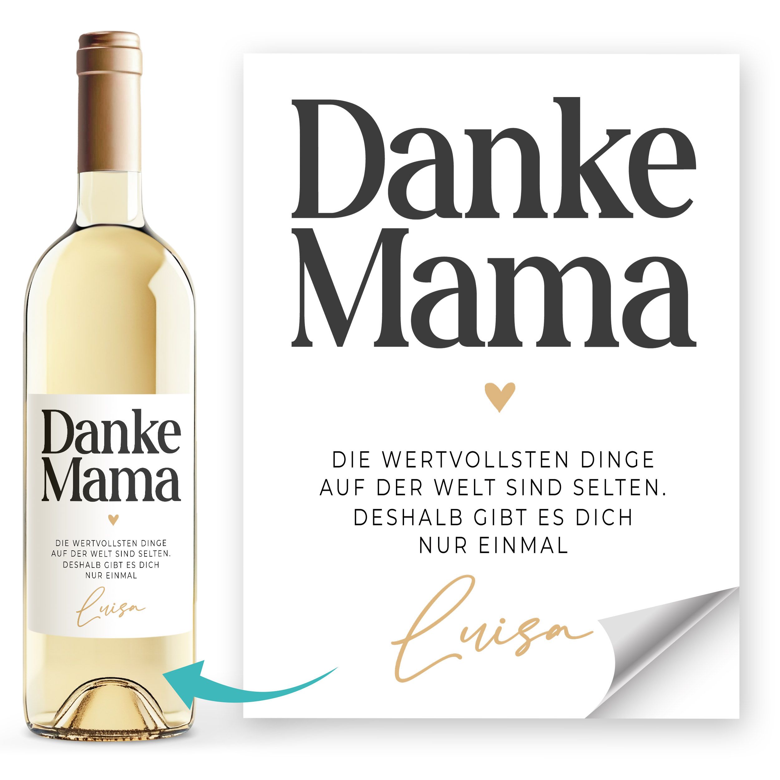 - Persönliches Geschenk mit Tiefgang & Herz. Sag „Danke Mama“ mit Stil: Dieses liebevoll designte Flaschenetikett macht aus jeder Weinflasche ein Unikat – mit individueller Namenszeile und emotionaler Botschaft, die direkt ins Herz trifft