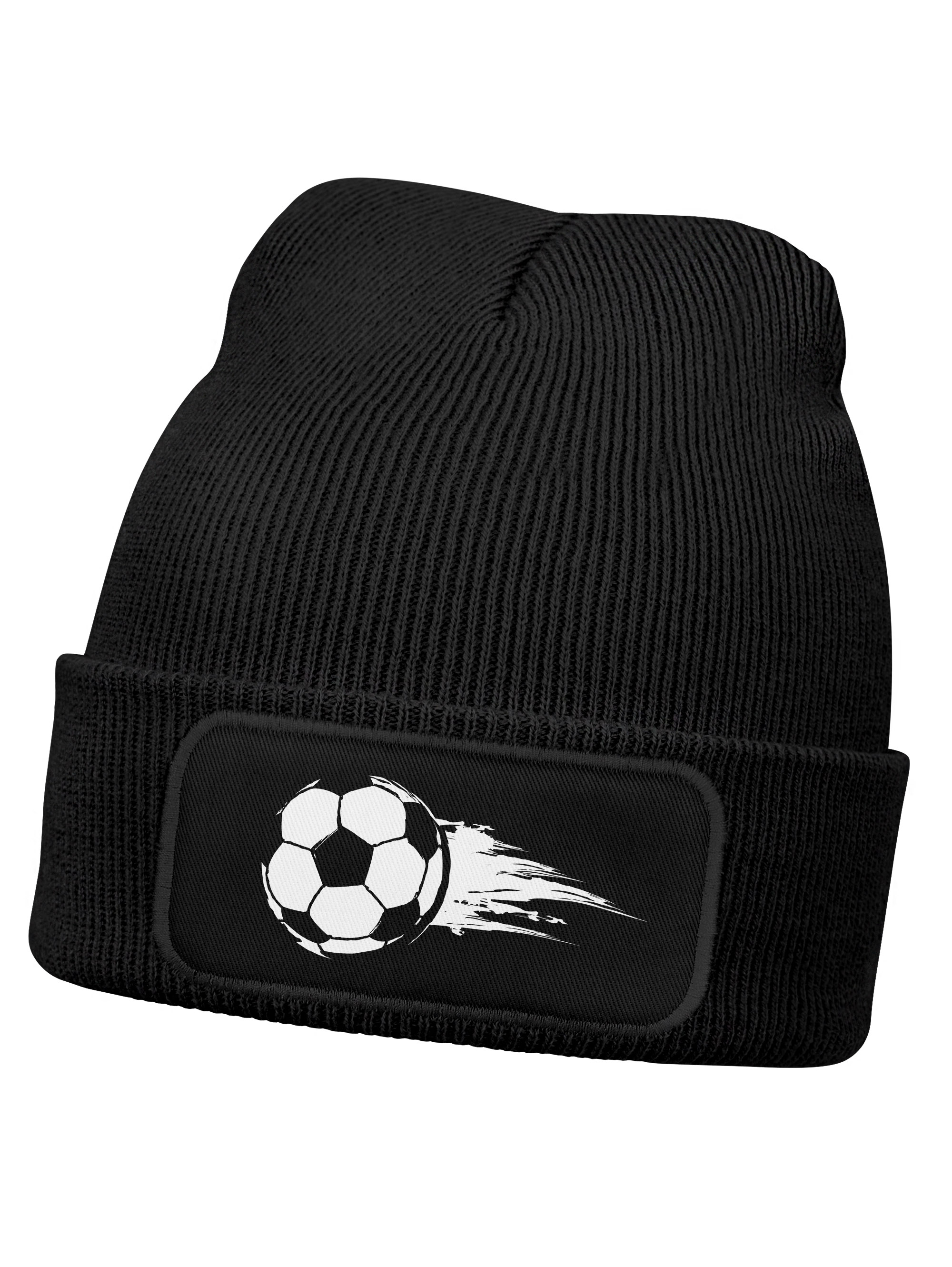 Perfekter Winterbegleiter für coole Jungs: Kindermütze aus Strickmaterial mit bedrucktem Patch